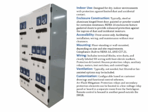 – Short-Circuit Rating: Up to 63 kA Sym. – up to 170KA (2s peak withstand rating) – Enclosures: NEMA 1 (indoor) or NEMA 3R (outdoor), rain-tight, vented with filter accessible without entering high voltage compartment.